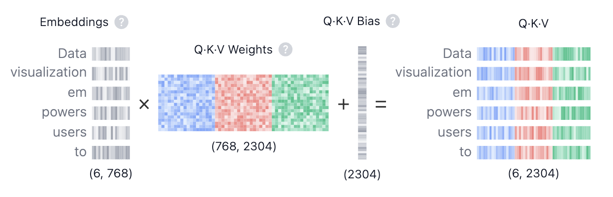 通过使用这些 QKV 值,模型可以计算注意力分数,这些分数决定在生成预测时每个标记应该受到多少关注。